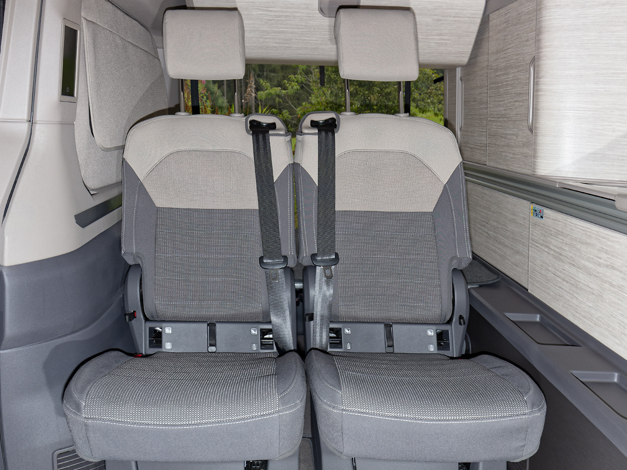 De Second Skin® beschermhoes voor de linker slaapstoel in de passagiersruimte van de VW T7 California is uitgevoerd in het originele VW-design Ribella Sandwick / Raven. De hoes is vervaardigd uit originele VW-stoffen en sluit zo nauwkeurig aan dat het verschil met de originele bekleding vrijwel niet zichtbaar is. Ideaal voor langdurige bescherming zonder in te leveren op uitstraling of comfort.