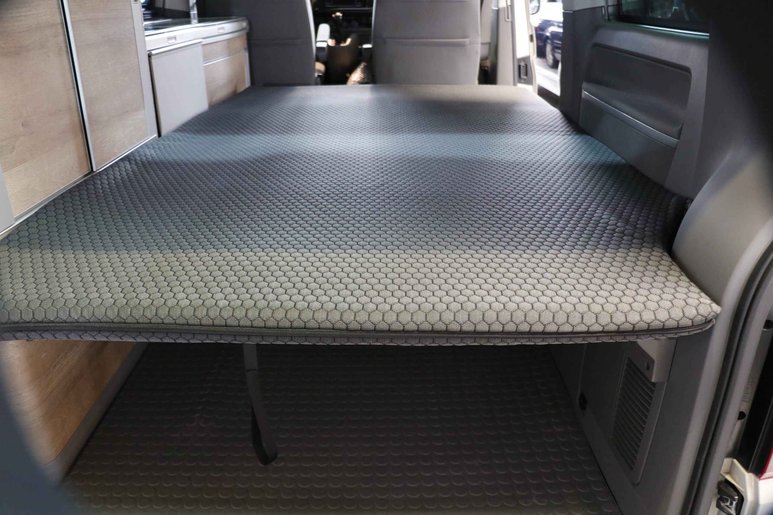 Dit matras is passend voor de bedbank (beneden-bed) van de Volkswagen California T5, T6 en T6.1 en is gemaakt van siliconen koudschuim. Dit materiaal breekt niet als het (ook tijdens de koude wintermaanden) in de camper blijft liggen. Met dit matras op de bedbank van de California ligt u beslist heerlijk! Het matras (gemaakt in Nederland) kan gebruikt worden als vervangend matras maar ook als topper / topmatras. De hoes is gemaakt van ecologische katoen en kan gewassen worden op 40 graden in de wasmachine.